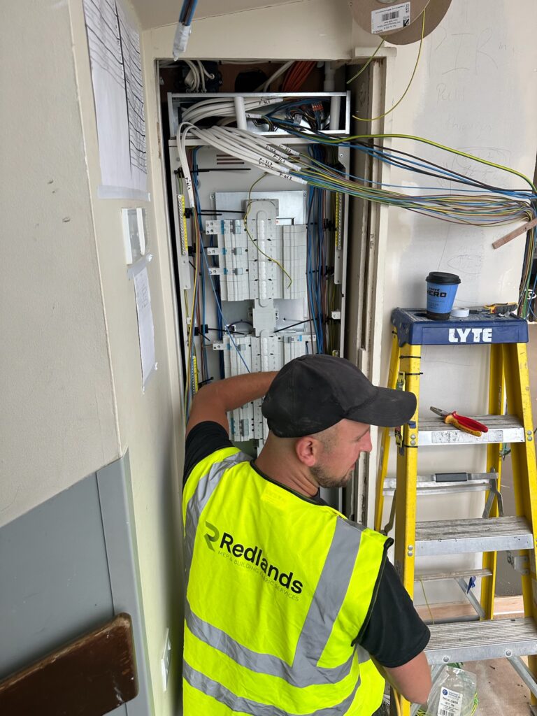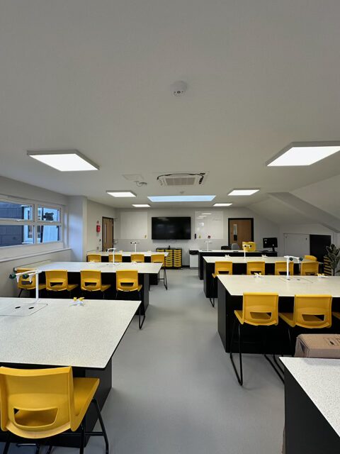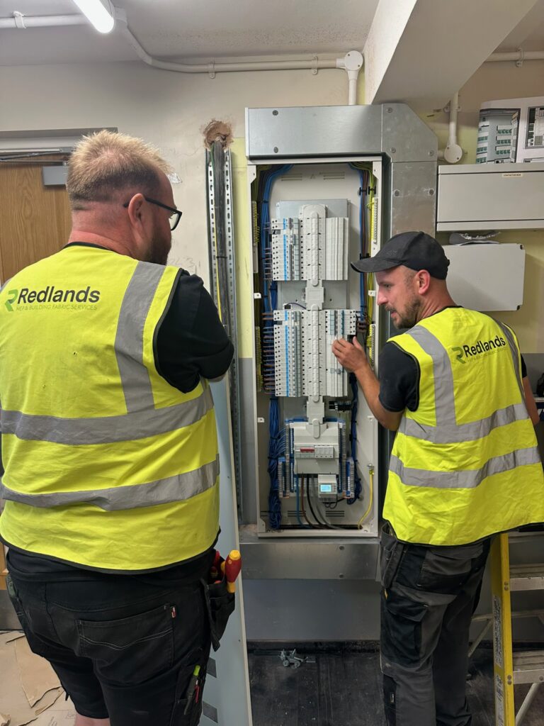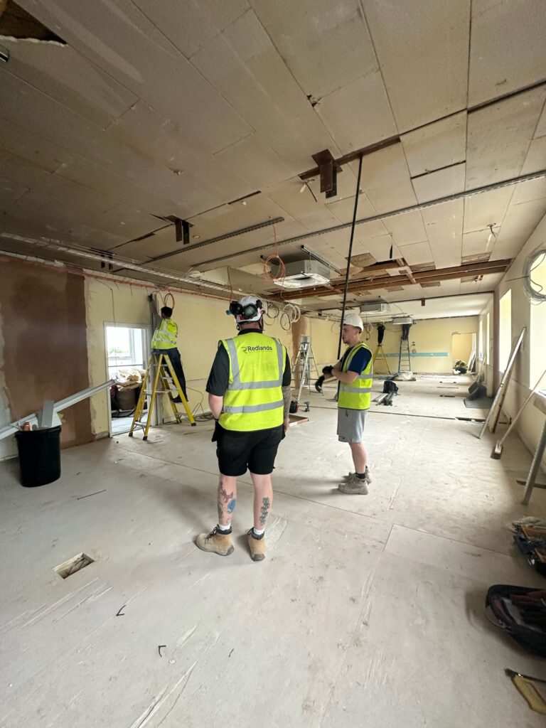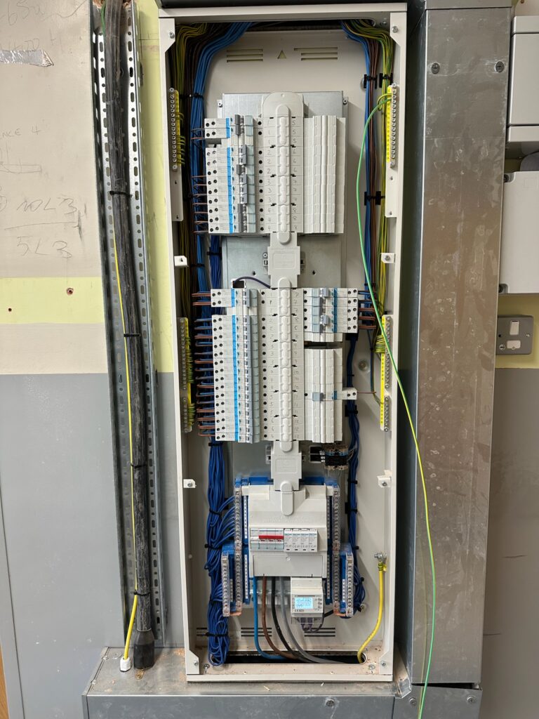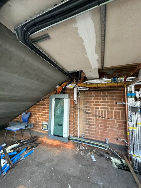 The works were carried out during the 8-week summer holiday window, presenting a challenging but achievable deadline. The objective: complete a comprehensive electrical installation — from containment and power distribution to lighting and life safety systems — ready for the new academic term. Phase 1 is part of an 18month contract to fully refurbish the Fairfield building.